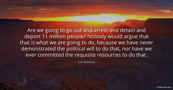 Gutierrez, Luis. (2026, January 14). Are we going to go out and arrest and detain and deport 11 million people? Nobody would argue that that is what we are going to do, because we have never demonstrated the political will to do that, nor have we ever committed the requisite resources to do that. FixQuotes. https://fixquotes.com/quotes/are-we-going-to-go-out-and-arrest-and-detain-and-150775/