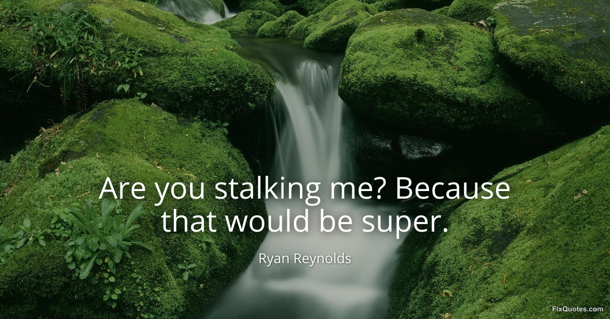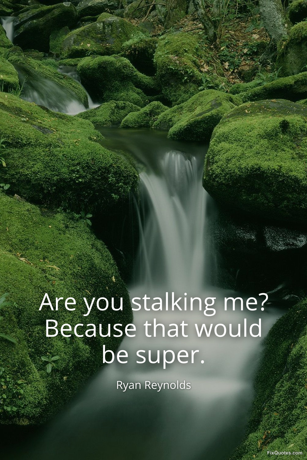 Reynolds, Ryan. "Are you stalking me? Because that would be super." FixQuotes. January 16, 2026. https://fixquotes.com/quotes/are-you-stalking-me-because-that-would-be-super-102417/.