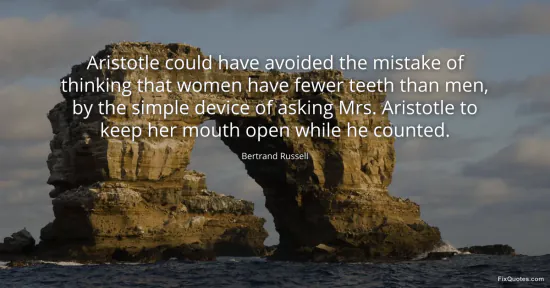 Russell, Bertrand. "Aristotle could have avoided the mistake of thinking that women have fewer teeth than men, by the simple device of asking Mrs. Aristotle to keep her mouth open while he counted." FixQuotes. January 18, 2026. https://fixquotes.com/quotes/aristotle-could-have-avoided-the-mistake-of-16760/.