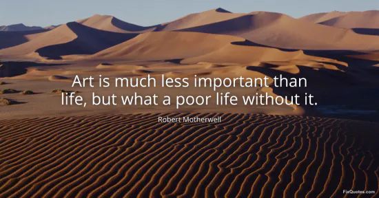 Then he pivots: “but what a poor life without it.” The subtext is that art’s value can’t be measured by usefulness in the obvious sense. Art doesn’t feed you or stop a war, but it changes what “feeding” and “stopping” even mean by sharpening perception and enlarging emotional range. Motherwell understood art as a way of staying awake inside history - not an escape hatch, but a heightened form of attention. Abstract painting, especially, risks being dismissed as decorative because it doesn’t narrate. This sentence is his rebuttal: even without literal content, art can be a moral instrument, giving form to anxiety, desire, and the feeling of living in a century that repeatedly broke its promises.