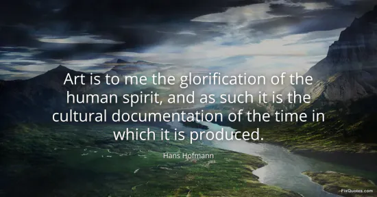 Hofmann, Hans. "Art is to me the glorification of the human spirit, and as such it is the cultural documentation of the time in which it is produced." FixQuotes. January 15, 2026. https://fixquotes.com/quotes/art-is-to-me-the-glorification-of-the-human-148501/.