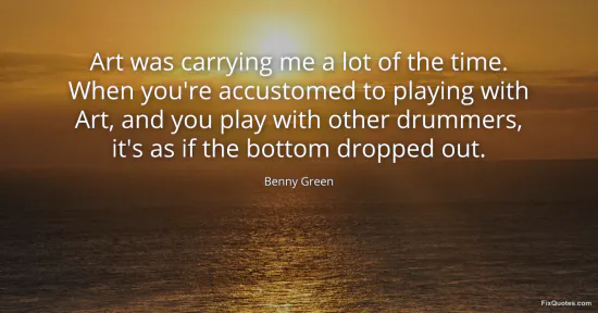 Green, Benny. (2026, January 17). Art was carrying me a lot of the time. When you're accustomed to playing with Art, and you play with other drummers, it's as if the bottom dropped out. FixQuotes. https://fixquotes.com/quotes/art-was-carrying-me-a-lot-of-the-time-when-youre-36940/