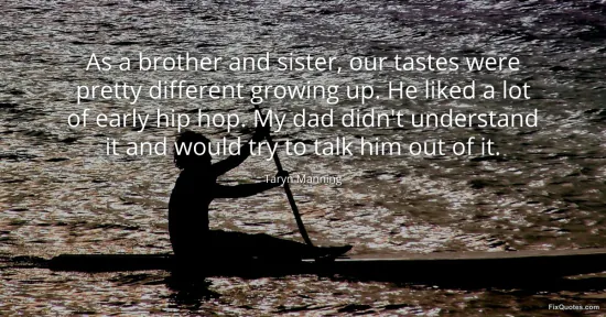 Manning, Taryn. (2026, January 17). As a brother and sister, our tastes were pretty different growing up. He liked a lot of early hip hop. My dad didn't understand it and would try to talk him out of it. FixQuotes. https://fixquotes.com/quotes/as-a-brother-and-sister-our-tastes-were-pretty-72408/