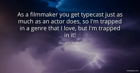 Romero, George A. "As a filmmaker you get typecast just as much as an actor does, so I'm trapped in a genre that I love, but I'm trapped in it!" FixQuotes. January 16, 2026. https://fixquotes.com/quotes/as-a-filmmaker-you-get-typecast-just-as-much-as-111661/.