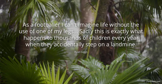 Giggs, Ryan. "As a footballer I can't imagine life without the use of one of my legs... Sadly this is exactly what happens to thousands of children every year when they accidentally step on a landmine." FixQuotes. January 15, 2026. https://fixquotes.com/quotes/as-a-footballer-i-cant-imagine-life-without-the-155970/.