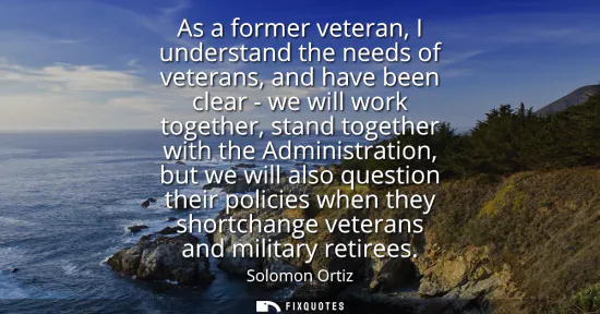 The language hinges on the repeated together, emphasizing unity among lawmakers and with the executive branch, but it pivots on question, asserting accountability as an act of fidelity rather than defiance. Shortchange evokes more than arithmetic; it suggests a moral failing when benefits promised in recruitment, service, and retirement are treated as negotiable line items. The statement also draws a distinction between supporting troops and rubber-stamping policy. Real support means securing timely care, stable retiree benefits, and effective transition programs, not simply adopting a pro-military posture. Ortiz presents veteran advocacy as a bipartisan obligation rooted in duty, experience, and oversight, and he implies that the measure of any administration is found not in rhetoric but in how it treats those who have already paid their dues.