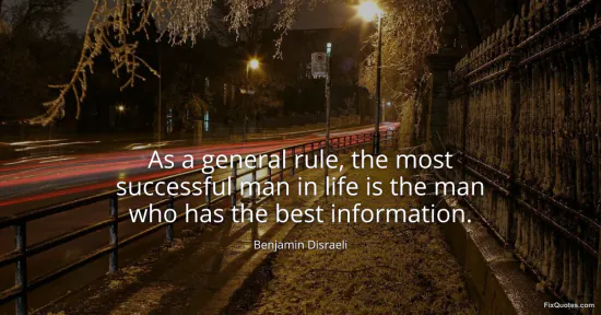 Disraeli, Benjamin. (2026, February 19). As a general rule, the most successful man in life is the man who has the best information. FixQuotes. https://fixquotes.com/quotes/as-a-general-rule-the-most-successful-man-in-life-30062/