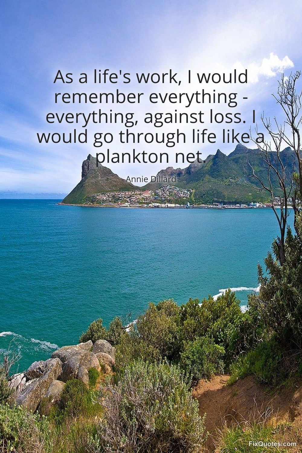 Dillard, Annie. (2026, January 15). As a life's work, I would remember everything - everything, against loss. I would go through life like a plankton net. FixQuotes. https://fixquotes.com/quotes/as-a-lifes-work-i-would-remember-everything-41410/