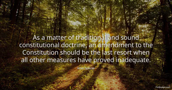 Specter, Arlen. "As a matter of traditional and sound constitutional doctrine, an amendment to the Constitution should be the last resort when all other measures have proved inadequate." FixQuotes. January 17, 2026. https://fixquotes.com/quotes/as-a-matter-of-traditional-and-sound-42608/.