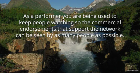 Maron, Marc. "As a performer you are being used to keep people watching so the commercial endorsements that support the network can be seen by as many people as possible." FixQuotes. January 16, 2026. https://fixquotes.com/quotes/as-a-performer-you-are-being-used-to-keep-people-104492/.