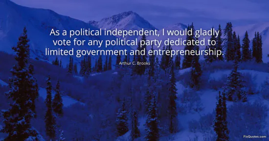 Brooks, Arthur C. "As a political independent, I would gladly vote for any political party dedicated to limited government and entrepreneurship." FixQuotes. January 16, 2026. https://fixquotes.com/quotes/as-a-political-independent-i-would-gladly-vote-122788/.