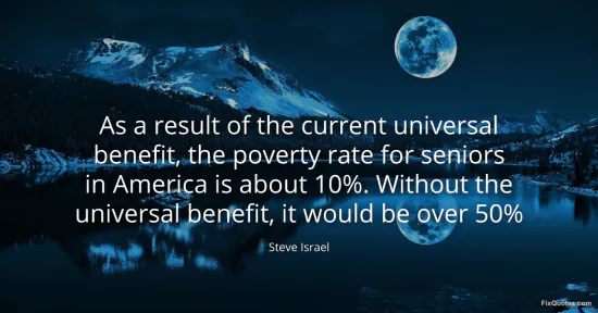 Israel, Steve. (2026, January 17). As a result of the current universal benefit, the poverty rate for seniors in America is about 10%. Without the universal benefit, it would be over 50%. FixQuotes. https://fixquotes.com/quotes/as-a-result-of-the-current-universal-benefit-the-64926/