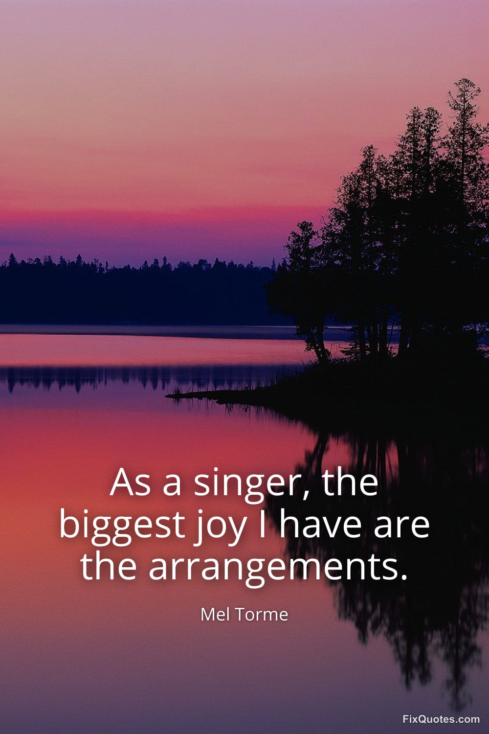 Torme, Mel. (2026, January 17). As a singer, the biggest joy I have are the arrangements. FixQuotes. https://fixquotes.com/quotes/as-a-singer-the-biggest-joy-i-have-are-the-82005/