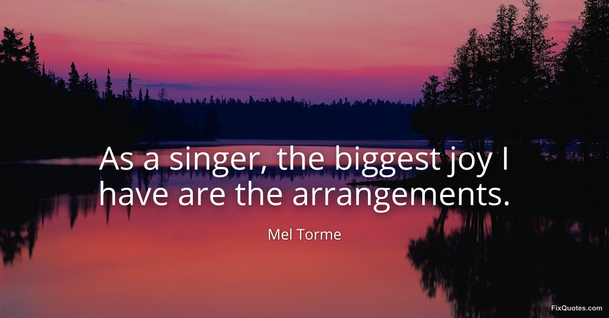 Torme, Mel. "As a singer, the biggest joy I have are the arrangements." FixQuotes. January 17, 2026. https://fixquotes.com/quotes/as-a-singer-the-biggest-joy-i-have-are-the-82005/.