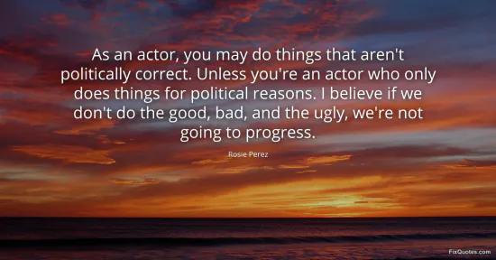 Perez, Rosie. (2026, January 15). As an actor, you may do things that aren't politically correct. Unless you're an actor who only does things for political reasons. I believe if we don't do the good, bad, and the ugly, we're not going to progress. FixQuotes. https://fixquotes.com/quotes/as-an-actor-you-may-do-things-that-arent-145071/