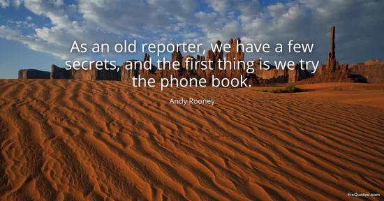 Rooney, Andy. "As an old reporter, we have a few secrets, and the first thing is we try the phone book." FixQuotes. January 17, 2026. https://fixquotes.com/quotes/as-an-old-reporter-we-have-a-few-secrets-and-the-29830/.