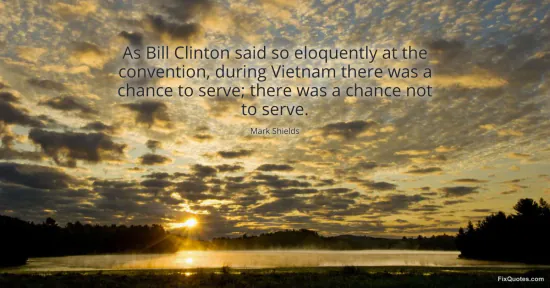 Shields, Mark. (2026, January 15). As Bill Clinton said so eloquently at the convention, during Vietnam there was a chance to serve; there was a chance not to serve. FixQuotes. https://fixquotes.com/quotes/as-bill-clinton-said-so-eloquently-at-the-146858/