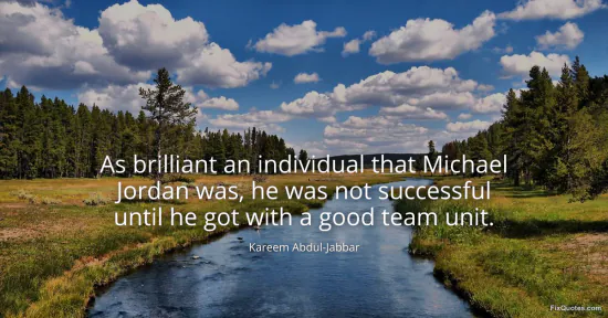 Abdul-Jabbar, Kareem. "As brilliant an individual that Michael Jordan was, he was not successful until he got with a good team unit." FixQuotes. January 16, 2026. https://fixquotes.com/quotes/as-brilliant-an-individual-that-michael-jordan-85987/.