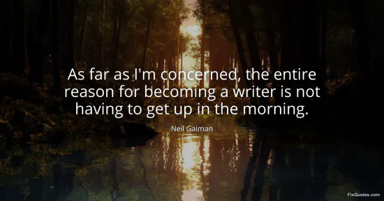 "As far as I'm concerned, the entire reason for becoming a writer is not having to get up in the morning"