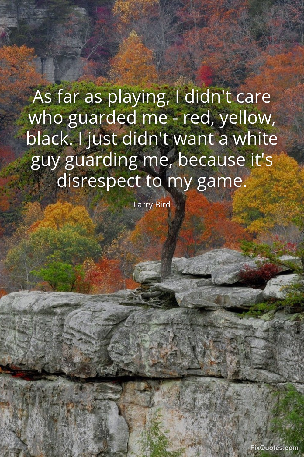 Bird, Larry. "As far as playing, I didn't care who guarded me - red, yellow, black. I just didn't want a white guy guarding me, because it's disrespect to my game." FixQuotes. January 15, 2026. https://fixquotes.com/quotes/as-far-as-playing-i-didnt-care-who-guarded-me-167953/.