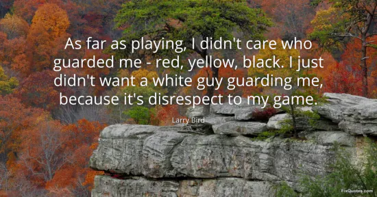 Bird, Larry. (2026, January 15). As far as playing, I didn't care who guarded me - red, yellow, black. I just didn't want a white guy guarding me, because it's disrespect to my game. FixQuotes. https://fixquotes.com/quotes/as-far-as-playing-i-didnt-care-who-guarded-me-167953/