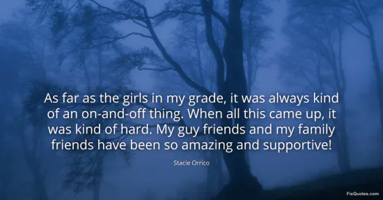 Orrico, Stacie. (2026, February 18). As far as the girls in my grade, it was always kind of an on-and-off thing. When all this came up, it was kind of hard. My guy friends and my family friends have been so amazing and supportive! FixQuotes. https://fixquotes.com/quotes/as-far-as-the-girls-in-my-grade-it-was-always-63458/