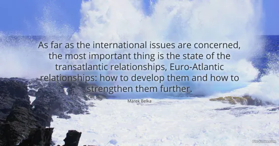 "As far as the international issues are concerned, the most important thing is the state of the transatlantic relationships, Euro-Atlantic relationships: how to develop them and how to strengthen them further"