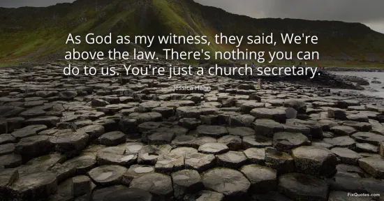 Hahn, Jessica. (2026, January 16). As God as my witness, they said, We're above the law. There's nothing you can do to us. You're just a church secretary. FixQuotes. https://fixquotes.com/quotes/as-god-as-my-witness-they-said-were-above-the-law-106586/