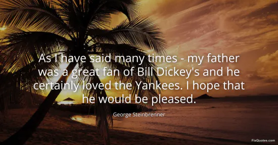 Steinbrenner, George. "As I have said many times - my father was a great fan of Bill Dickey's and he certainly loved the Yankees. I hope that he would be pleased." FixQuotes. January 17, 2026. https://fixquotes.com/quotes/as-i-have-said-many-times-my-father-was-a-great-60812/.