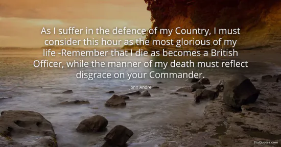 Andre, John. (2026, January 15). As I suffer in the defence of my Country, I must consider this hour as the most glorious of my life -Remember that I die as becomes a British Officer, while the manner of my death must reflect disgrace on your Commander. FixQuotes. https://fixquotes.com/quotes/as-i-suffer-in-the-defence-of-my-country-i-must-170781/