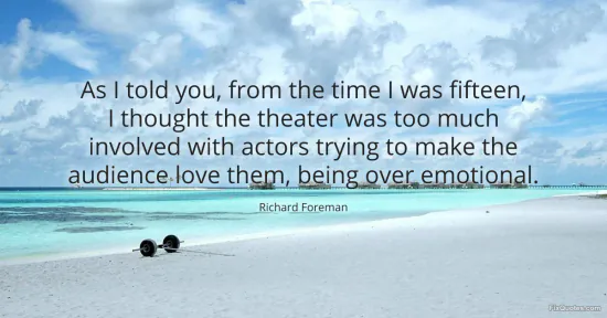Foreman, Richard. (2026, January 15). As I told you, from the time I was fifteen, I thought the theater was too much involved with actors trying to make the audience love them, being over emotional. FixQuotes. https://fixquotes.com/quotes/as-i-told-you-from-the-time-i-was-fifteen-i-160813/
