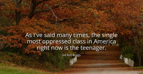 Briggs, Joe Bob. (2026, January 16). As I've said many times, the single most oppressed class in America right now is the teenager. FixQuotes. https://fixquotes.com/quotes/as-ive-said-many-times-the-single-most-oppressed-127871/