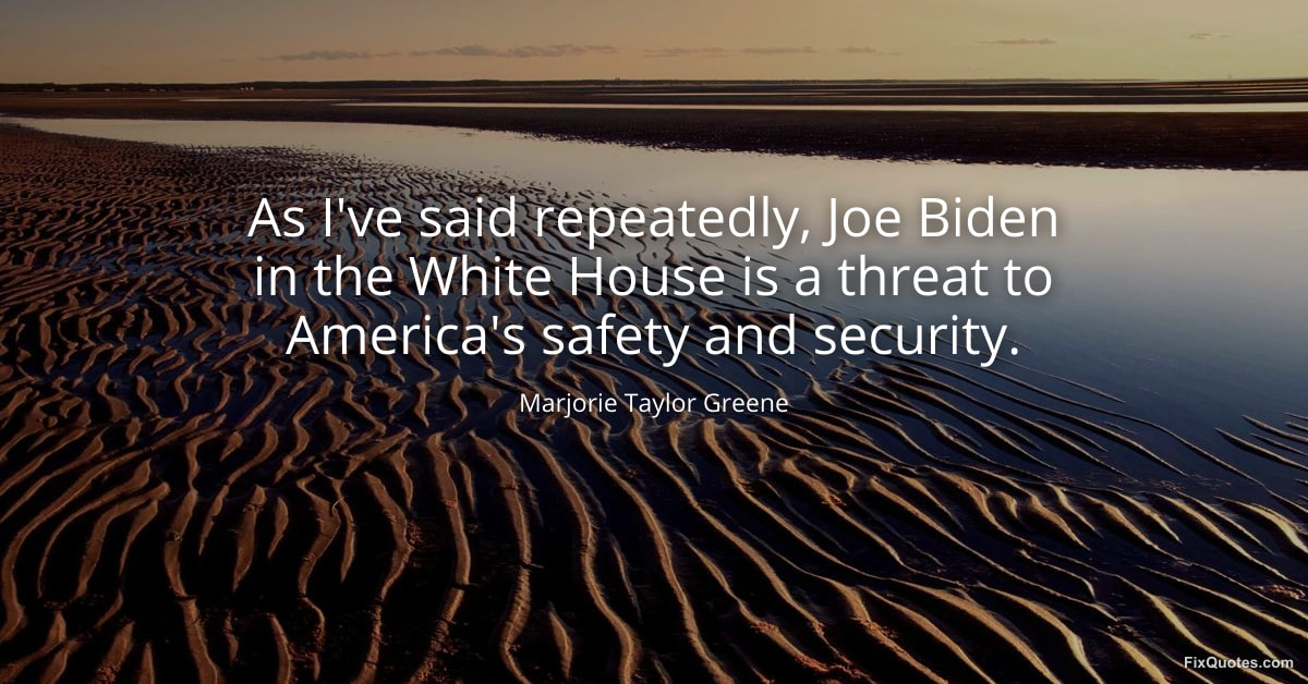 Greene, Marjorie Taylor. "As I've said repeatedly, Joe Biden in the White House is a threat to America's safety and security." FixQuotes. January 15, 2026. https://fixquotes.com/quotes/as-ive-said-repeatedly-joe-biden-in-the-white-173547/.