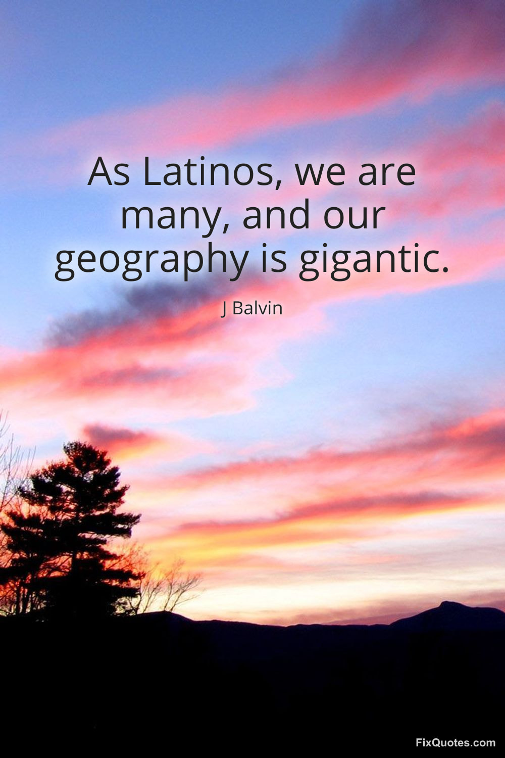 Balvin, J. "As Latinos, we are many, and our geography is gigantic." FixQuotes. February 4, 2026. https://fixquotes.com/quotes/as-latinos-we-are-many-and-our-geography-is-184915/.