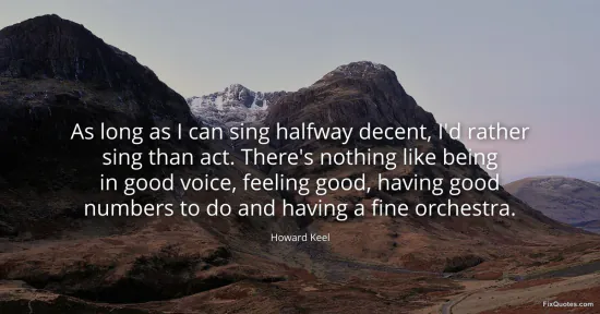 Keel, Howard. "As long as I can sing halfway decent, I'd rather sing than act. There's nothing like being in good voice, feeling good, having good numbers to do and having a fine orchestra." FixQuotes. January 15, 2026. https://fixquotes.com/quotes/as-long-as-i-can-sing-halfway-decent-id-rather-123315/.