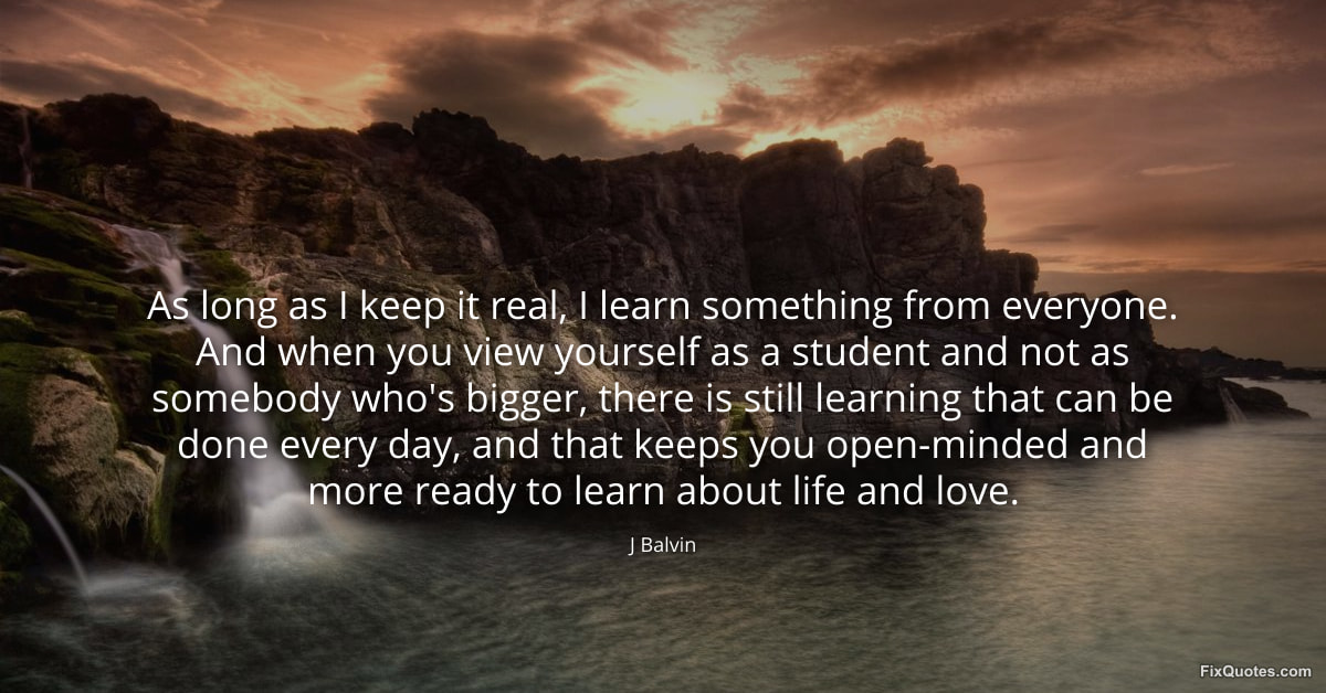 Balvin, J. (2026, February 4). As long as I keep it real, I learn something from everyone. And when you view yourself as a student and not as somebody who's bigger, there is still learning that can be done every day, and that keeps you open-minded and more ready to learn about life and love. FixQuotes. https://fixquotes.com/quotes/as-long-as-i-keep-it-real-i-learn-something-from-184902/