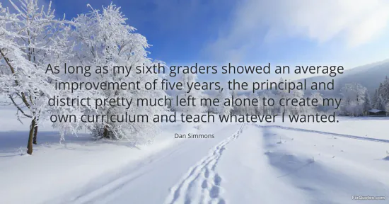 Simmons, Dan. (2026, January 15). As long as my sixth graders showed an average improvement of five years, the principal and district pretty much left me alone to create my own curriculum and teach whatever I wanted. FixQuotes. https://fixquotes.com/quotes/as-long-as-my-sixth-graders-showed-an-average-150378/