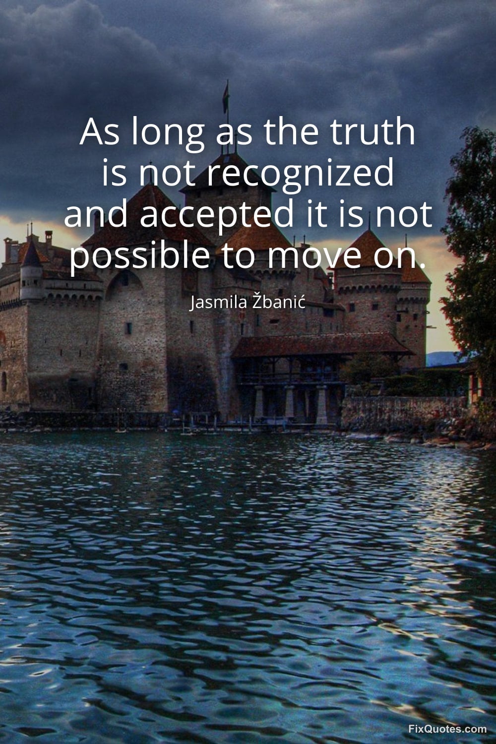 Žbanić, Jasmila. (2026, February 16). As long as the truth is not recognized and accepted, it is not possible to move on. FixQuotes. https://fixquotes.com/quotes/as-long-as-the-truth-is-not-recognized-and-185391/