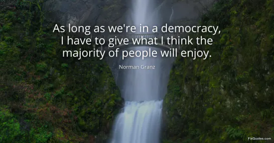 Granz, Norman. "As long as we're in a democracy, I have to give what I think the majority of people will enjoy." FixQuotes. January 16, 2026. https://fixquotes.com/quotes/as-long-as-were-in-a-democracy-i-have-to-give-97612/.