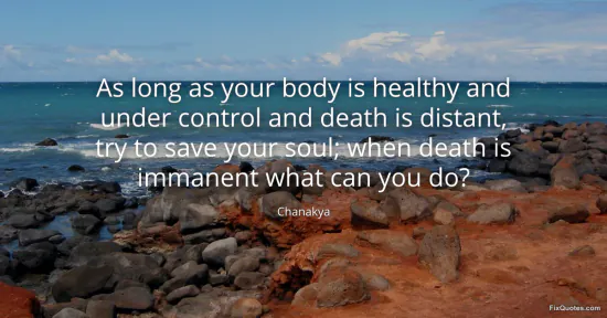 Chanakya. (2026, January 17). As long as your body is healthy and under control and death is distant, try to save your soul; when death is immanent what can you do? FixQuotes. https://fixquotes.com/quotes/as-long-as-your-body-is-healthy-and-under-control-30460/
