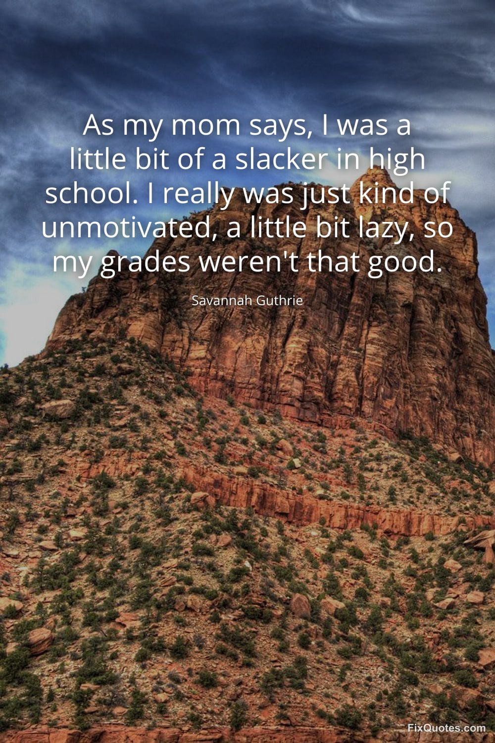 Guthrie, Savannah. (2026, February 11). As my mom says, I was a little bit of a slacker in high school. I really was just kind of unmotivated, a little bit lazy, so my grades weren't that good. FixQuotes. https://fixquotes.com/quotes/as-my-mom-says-i-was-a-little-bit-of-a-slacker-in-185269/