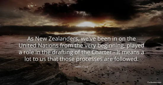 Clark, Helen. (2026, February 17). As New Zealanders, we've been in on the United Nations from the very beginning, played a role in the drafting of the Charter - It means a lot to us that those processes are followed. FixQuotes. https://fixquotes.com/quotes/as-new-zealanders-weve-been-in-on-the-united-161295/