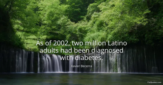 Becerra, Xavier. "As of 2002, two million Latino adults had been diagnosed with diabetes." FixQuotes. January 16, 2026. https://fixquotes.com/quotes/as-of-2002-two-million-latino-adults-had-been-98042/.