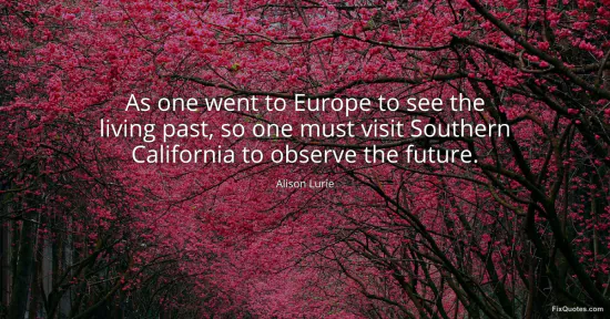 Lurie, Alison. (2026, January 15). As one went to Europe to see the living past, so one must visit Southern California to observe the future. FixQuotes. https://fixquotes.com/quotes/as-one-went-to-europe-to-see-the-living-past-so-35353/