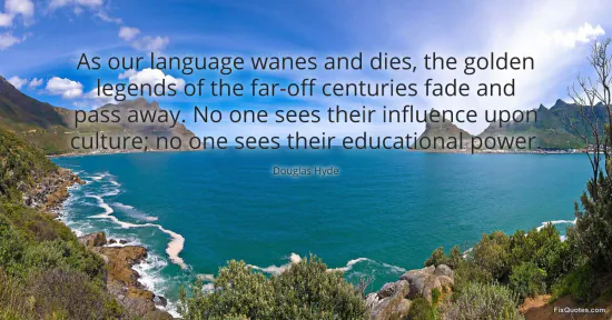 Hyde, Douglas. "As our language wanes and dies, the golden legends of the far-off centuries fade and pass away. No one sees their influence upon culture; no one sees their educational power." FixQuotes. January 16, 2026. https://fixquotes.com/quotes/as-our-language-wanes-and-dies-the-golden-legends-104371/.