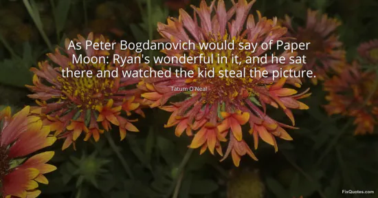 O'Neal, Tatum. "As Peter Bogdanovich would say of Paper Moon: Ryan's wonderful in it, and he sat there and watched the kid steal the picture." FixQuotes. January 16, 2026. https://fixquotes.com/quotes/as-peter-bogdanovich-would-say-of-paper-moon-97986/.