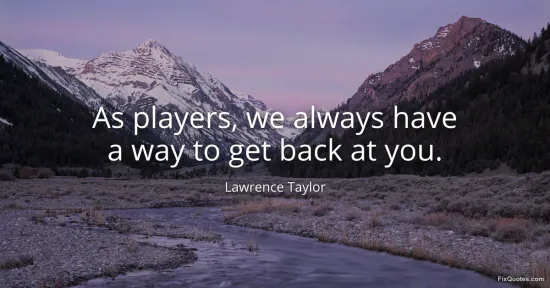 Taylor, Lawrence. (2026, January 16). As players, we always have a way to get back at you. FixQuotes. https://fixquotes.com/quotes/as-players-we-always-have-a-way-to-get-back-at-you-102120/