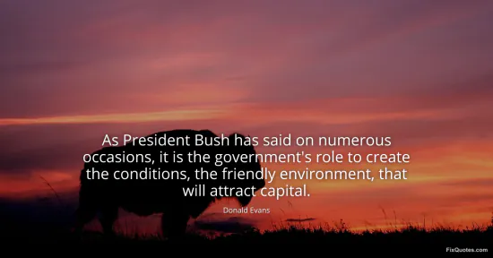 Evans, Donald. (2026, January 17). As President Bush has said on numerous occasions, it is the government's role to create the conditions, the friendly environment, that will attract capital. FixQuotes. https://fixquotes.com/quotes/as-president-bush-has-said-on-numerous-occasions-45300/