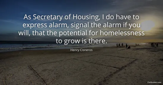 Cisneros, Henry. (2026, January 16). As Secretary of Housing, I do have to express alarm, signal the alarm if you will, that the potential for homelessness to grow is there. FixQuotes. https://fixquotes.com/quotes/as-secretary-of-housing-i-do-have-to-express-105649/