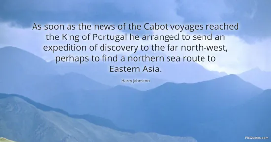 Johnston, Harry. "As soon as the news of the Cabot voyages reached the King of Portugal he arranged to send an expedition of discovery to the far north-west, perhaps to find a northern sea route to Eastern Asia." FixQuotes. January 18, 2026. https://fixquotes.com/quotes/as-soon-as-the-news-of-the-cabot-voyages-reached-23057/.